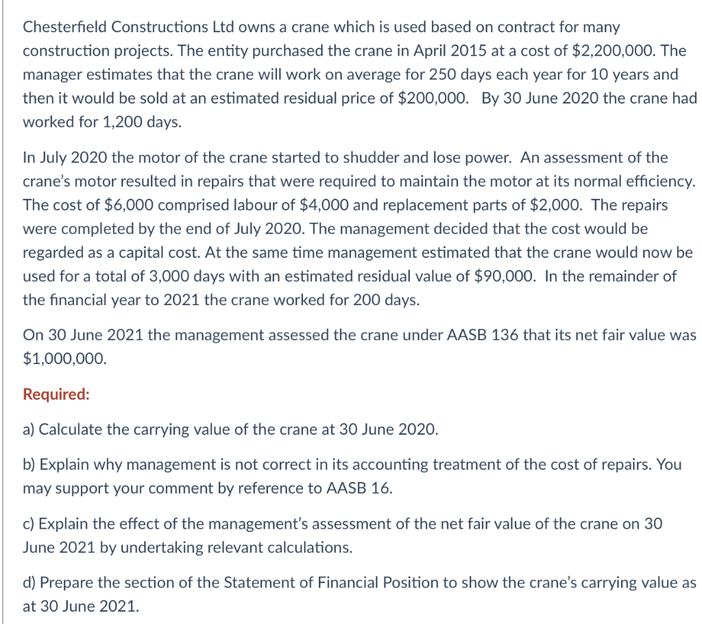 Solved Chesterfield Constructions Ltd Owns A Crane Which Is Chegg Com